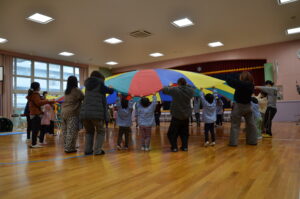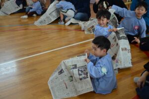 たんぽぽ組・さくら組・すみれ組の保育参観が行われ、幼稚園での子ども達の様子を保護者の皆様にご覧いただきました。サーキット遊び・新聞遊び・バルーン、親子ふれあいタイムを行って、楽しい時間を過ごすことが出来ました。来週は、ひまわり組の保育参観が行われ、和太鼓の発表もありますので、お楽しみになさってください。
