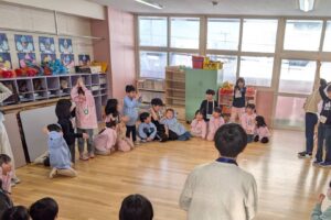 栄東小学校の5年生が来園し、ゲームやダンス・読み聞かせ・手遊びなど、小学生が考えた企画で一緒に遊び、どの遊びも大盛り上がりの子ども達!「来年、小学校で待ってますね!」という言葉に、小学校入学に向けて安心した様子の子ども達でした。