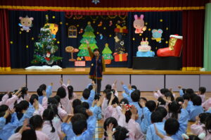 終園式 2025/12/25 行事 今日はクリスマス!ということで、お家にサンタさんが来てクリスマス・プレゼントを置いて行ってくれたお話で盛り上がる子ども達!!終園式では園長先生から大切なお話があり、子ども達は元気に「ハーイ!」と手をあげてお返事をしていました。今年も残りわずかとなりました。ご家族で楽しい冬休みを過ごし、良いお年をお迎えください!
